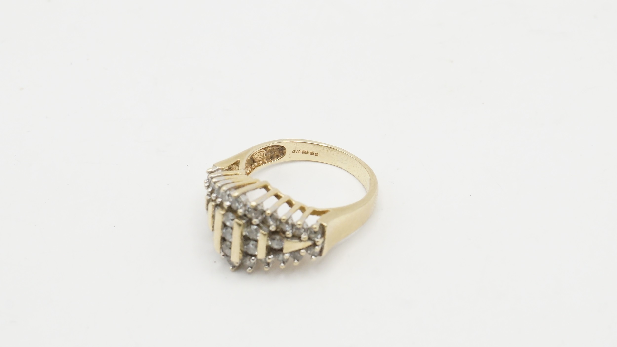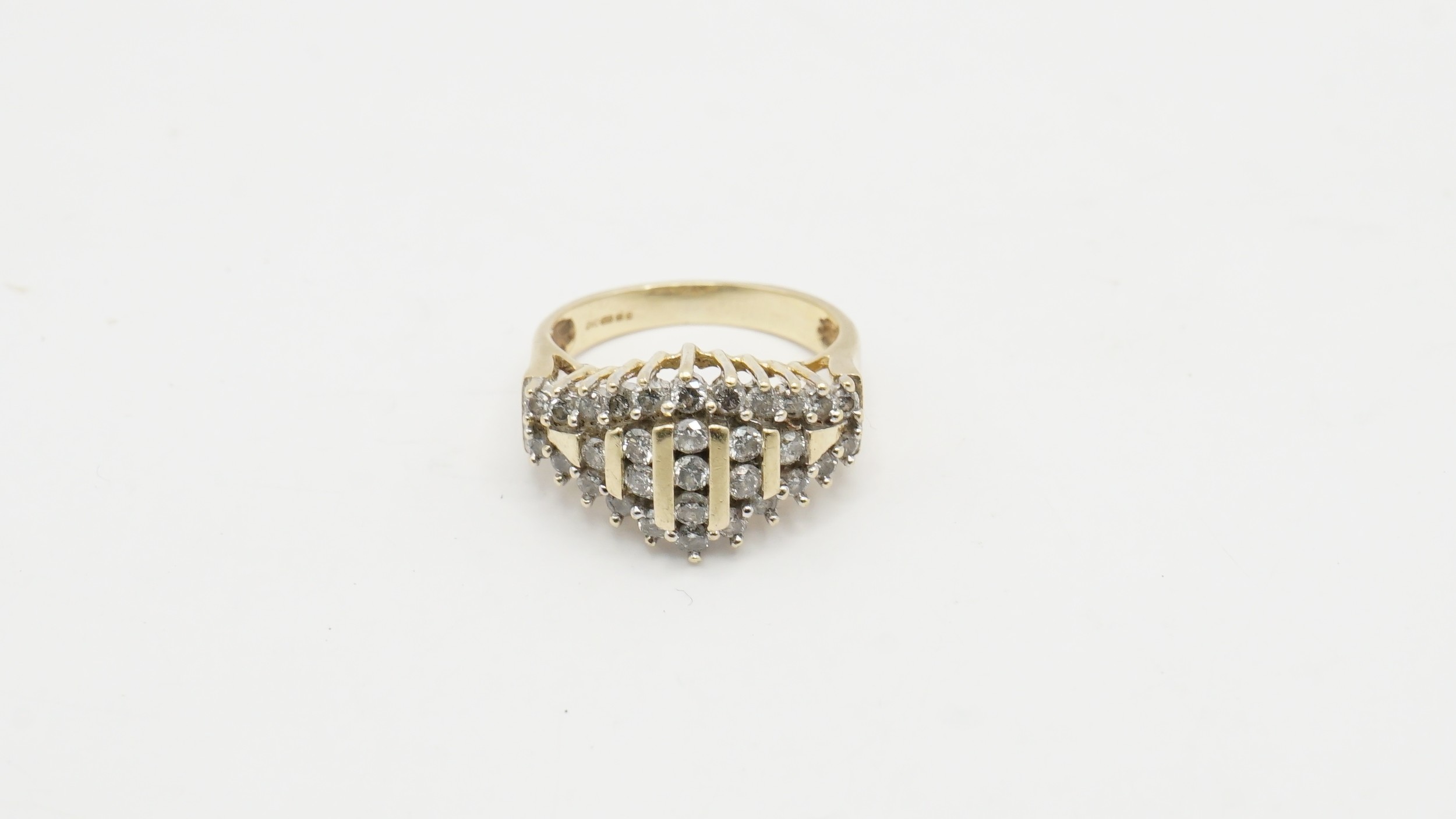 5g Total Weight - 14ct Gold & Diamond Cluster Ring - Size L